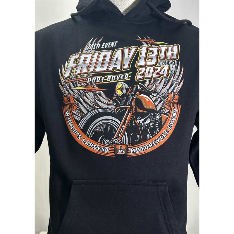 Fall Ride Sept 2024 Friday the 13th Mens Tees & Hoodies. 10″ front, 15″ back.